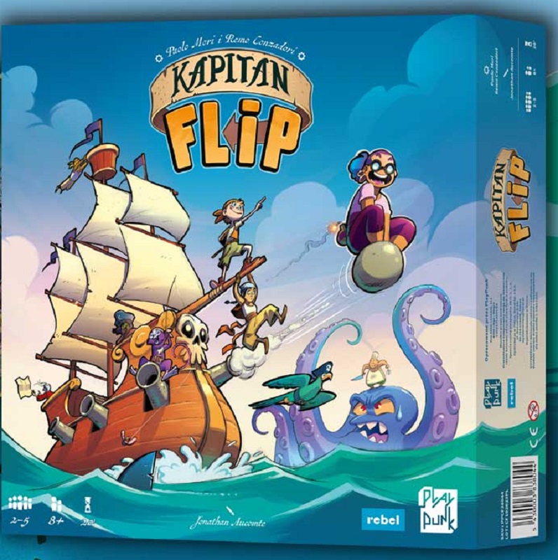 Kapitan Flip [Gra planszowa] / [gra autorstwa Paolo Mori i Remo Conzadori ; ilustracje Jonathan Aucomte]. - Gdańsk : Rebel, [2024]. - 1 pudełko : karton, plastik, tektura ; 26x26x6 cm + instrukcja.