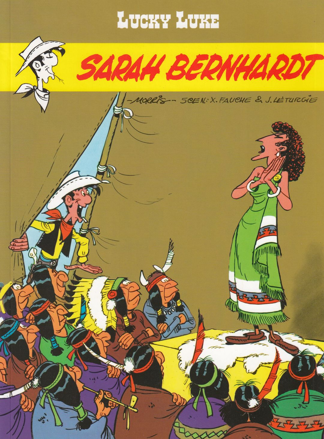 Wielka francuska aktorka Sarah Bernhardt rusza w tournée po Stanach Zjednoczonych. Owacyjnie witają ją miłośnicy teatru nowoczesnego, jednak bezpieczeństwu pięknej mistrzyni sceny zagrażają ludzie uważający się za strażników moralności. Prezydent USA zleca Lucky Luke’owi opiekę nad paryską gwiazdą i jej trupą. Samotnego Kowboja czeka trudne zadanie poprowadzenia wyprawy aktorów przez bezdroża Dzikiego Zachodu... Najszybszy kowboj na wschód i zachód od Rio Bravo – Lucky Luke, jego koń o stoickim podejściu do świata – Jolly Jumper, niezgułowaci bracia Daltonowie czy szalony pies Bzik są dziś ikonami popkultury.