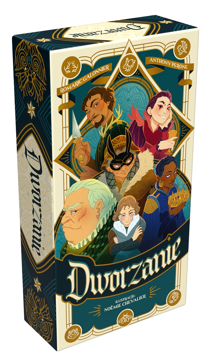 Dworzanie [Gra planszowa] / autorzy: Romaric Galonnier, Anthony Perone ; ilustracje Noëmie Chevalier. - Edycja polska. - Kraków : Lucky Duck Games, © 2024. - 1 pudełko ; karton ; 20x11x5 cm + instrukcja.