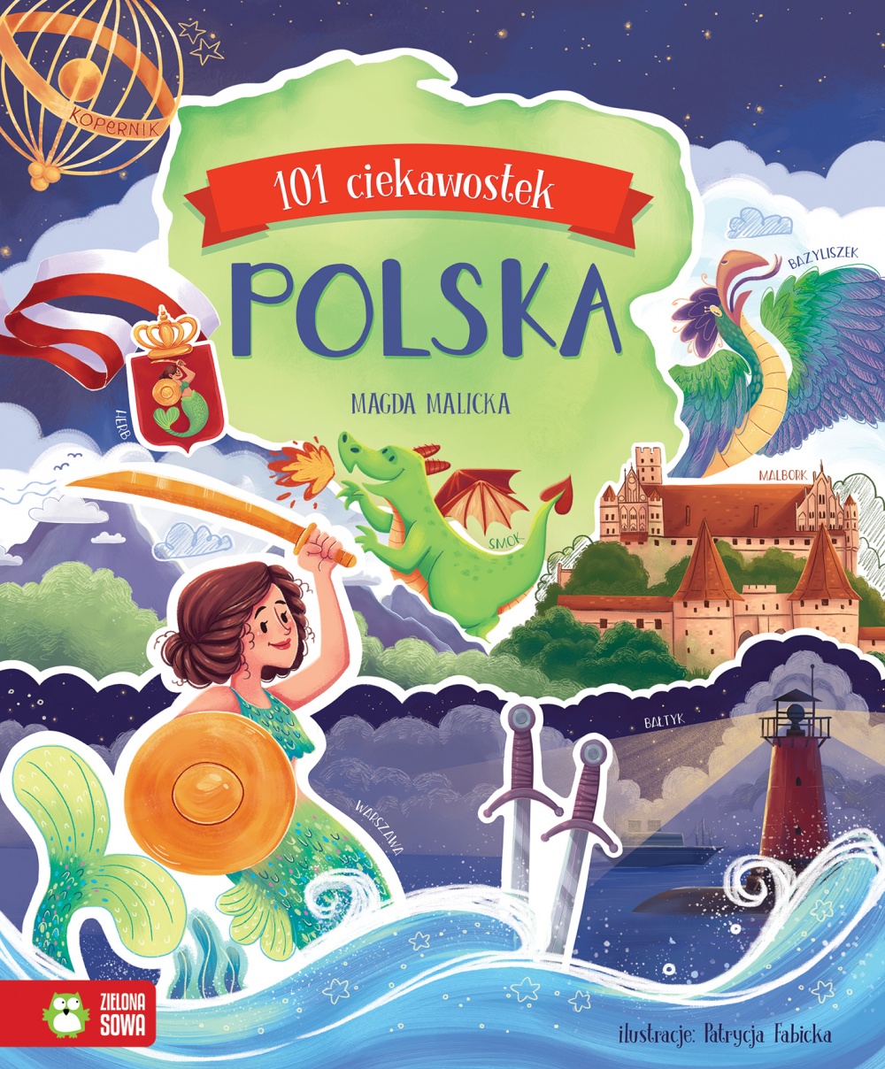 Czy wiesz, kto był pierwszym królem Polski? Które miasto jest stolicą pierników? Co to są dudki? Polska jest pełna ciekawostek! Odkryj je na kartach tej bogato ilustrowanej książki i dowiedz się, kim są szarytki, gdzie w Polsce może cię zwieść fatamorgana oraz która z liter najczęściej się pojawia w polskich wyrazach. Nowa seria „101 ciekawostek” to pełne tematycznych informacji książki dla dzieci, które opatrzone szczegółowymi ilustracjami, wzbogacą wiedzę każdego czytelnika. Przekonaj się, jak wiele wiesz o Polsce!
