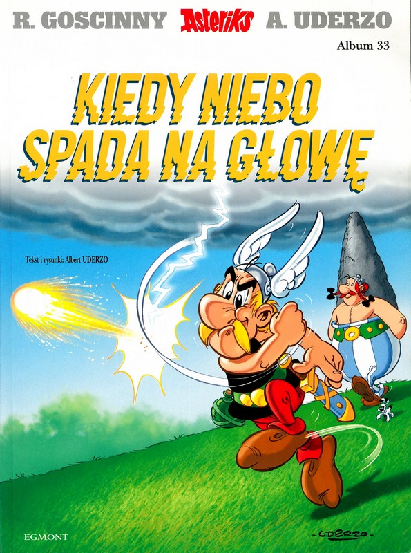 Tytuł oryginału: Le ciel lui tombe sur la tête. Rok wydania na podstawie strony internetowej księgarni taniaksiazka.pl. Na stronie tytułowej: Goscinny i Uderzo przedstawiają przygody Asteriksa.