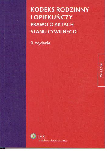 Kodeks rodzinny i opiekuńczy : prawo o aktach stanu cywilnego / [red. Roman Rudnik]. - Wyd. 9. Stan prawny na 5 marcz 2012 r. - Warszawa : Wolters Kluwer Business, 2012. - 157, [1] s. ; 21 cm.