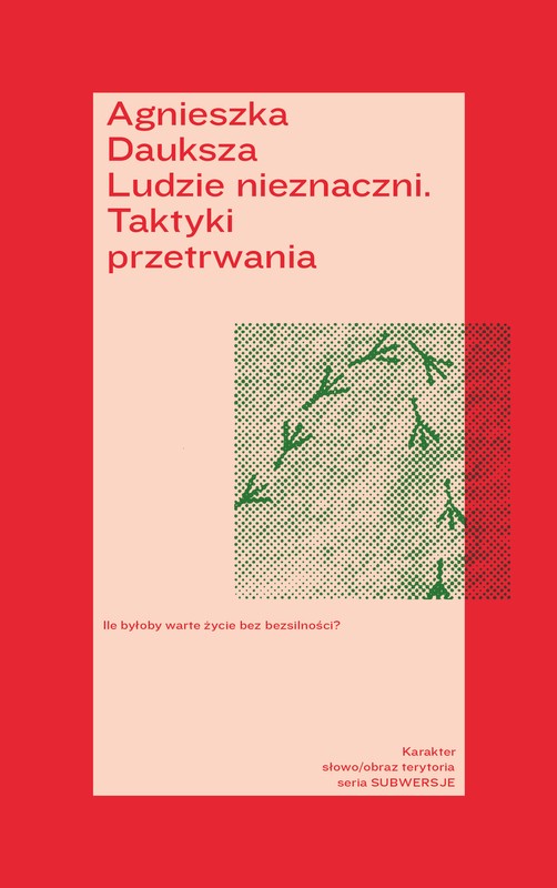 Dokonuje się właśnie zasadnicza zmiana kulturowa. Dominujący przez dekady model sukcesu, produktywności i dążenia do celu ulega erozji, odsłaniając pokłady tego, co słabe, niedoskonałe, nieudane, zwyczajne. W sferze publicznej pojawia się przyzwolenie na okazywanie własnej niemocy i bezsilności. Porażka przestaje wzbudzać wstyd, coraz częściej bywa postrzegana jako jedno z najbardziej powszechnych i zarazem twórczych doświadczeń. Autorka stawia pytania o jego wymiary – jak przegrywać we własnym stylu, czerpać satysfakcję z porażki, ale i jak używać jej do forsowania zmiany społecznej. Zastanawia się nad wywrotowym potencjałem bezsilności, która czerpie siłę z intuicji i niepokoju. W pasjonującym eseju Agnieszka Dauksza przygląda się strategiom oporu i taktykom przetrwania – przewodniczkami w tych poszukiwaniach są performerki, osoby publiczne, artystki, postacie literackie oraz zwierzęta. Na przykład meduzy, które łącząc swoje komórki, wyznaczają trop w dążeniu do „my” przekraczającego wrogość i osobnicze podziały. Autorka pyta, co to znaczy być osobą nieznaczną, i pisze, dlaczego właśnie odczucie tego stanu może pomóc w przetrwaniu wielogatunkowej wspólnoty.