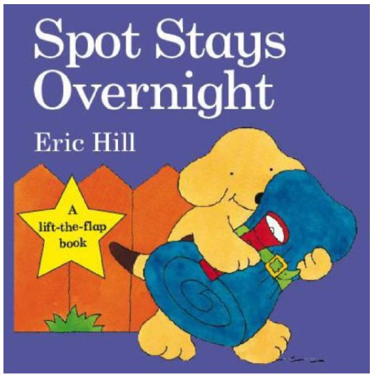Spot Stays Overnight / Eric Hill. - London : Puffin Books, copyright 2009. - [22] strony : ilustracje kolorowe ; 17x17 cm.